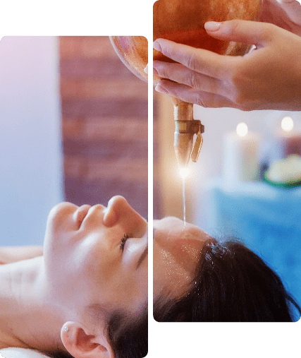 Ksheer Dhara uses milk infused with herbs. The medicated milk is poured over the head, and it is helpful in Vata and Pitta's predominant headaches, stress, and anxiety and helps nourish and relax the body.